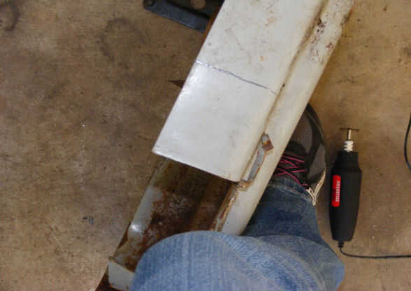Usé una vieja lavadora rota a conseguir un pedazo de chatarra y batir plano. En aproximadamente 1/16" de espesor me pareció sólido ser afianzado con abrazadera para sostener la extensión.