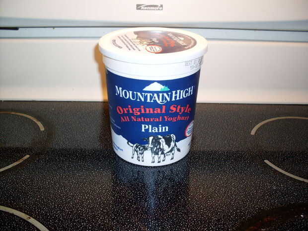 La primera es una Tarrina de yogur natural. Me gusta usar un yogur de leche entera, como la alta montaña. Usted necesitará un cuarto de él (sí, sé que es mucho, pero reduce un poco). He encontrado 1 cuarto de galón de yogur pesa alrededor de 2 libras. Yogur se vende por peso en los envases más grandes, por lo que se puede usar una tina de 2 libras de él, y será abundante. (en Safeway, esa tina tamaño vende por unos $3)