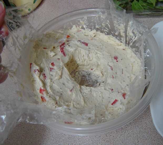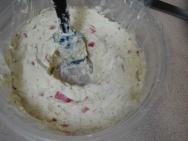 esta es una muy buena extensión de yogur. Es del show de Alton Brown, "Come bien" en la red de alimentación. Tiene un sabor fuerte y picante, con la textura de una suave crema de queso. Esta propagación es mejor en galletitas de agua, pero funci