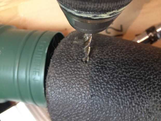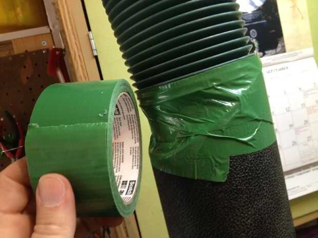 Cortó el extremo cuadrado de la aspiradora y luego perforar un agujero para un perno que va hacia el exterior. Puse las arandelas interior y exterior y fija con una tuerca. Envuelve un burlete de Flex-A-salida para hacer un cierre hermético. He perforado un agujero en el vacío de la hoja y luego fijo que todos juntos. Hay suficiente juego para conseguir el perno a ir fácilmente. Entonces envolvió tres capas de cinta para asegurarse de que es una conexión sólida. Cuando no tenga la extensión, sólo Retire la cinta del conducto y desenrosque el tornillo.