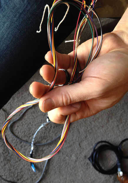Si no tienes varios colores podría utilizar un pedazo de trozo de madera y clavos para crear un peine para ayudar a mantener la pinza cables separados o simplemente un peine, cepillo, erizo, etc.. Cualquier cosa que le Deslice los cables y mantenerlos separados y en orden.