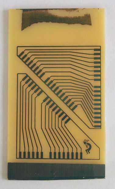 Impreso el diseño en las hojas de transparencia con mi impresora laser. Utiliza un Pre-sensitized y exposición de 10 minutos con una lámpara fluorescente. Técnica de la aguafuerte estándar fueron utilizados.