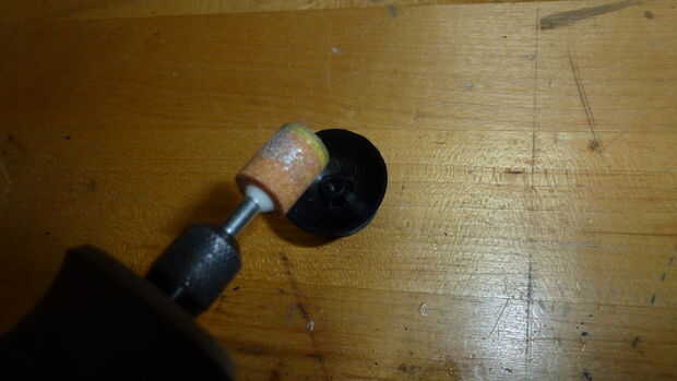 Utilizando la dremel, la parte inferior de la barra de arena donde hay un pequeño nudo hasta que quede al ras.