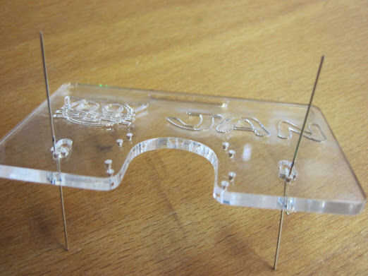 Las patas de los leds se curva 90 ° en direcciones opuestas (por ejemplo, la pata más larga con un edding Marcos) e insertan en los dos agujeros en forma de led, que lo llevó hacia el nombre y el icono.