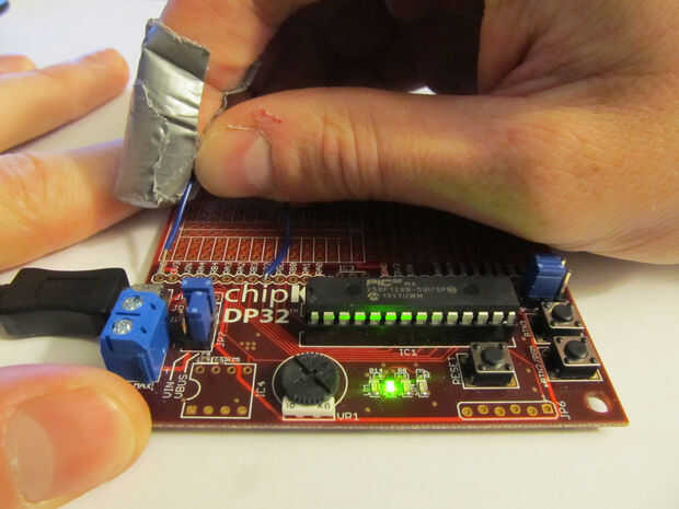 Al hacerlo, en cualquiera de estas tarjetas, a ver LED 1 cambio cada vez que toque tierra.