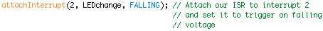 "Función" se refiere al nombre de la función que quieres que sea tu ISR Cuando su interrupción se activa, el microcontrolador ejecutar el código en el ISR de esa interrupción y regresa al bucle principal donde se quedó. En nuestro ejemplo, nos llama nuestro ISR "LEDchange".