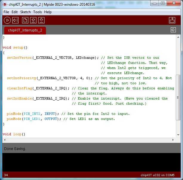 Descargar el código de ejemplo Interrupts_2 y cargarlo en su tablero.