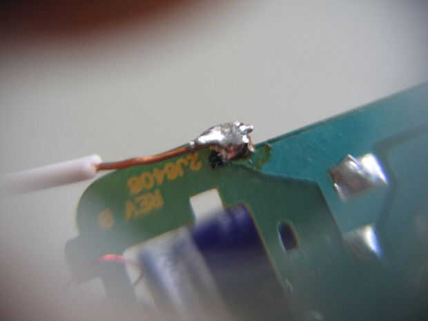 4. ahora, tome los extremos del cable de conexión y les de la soldadura como se especifica en las fotos.