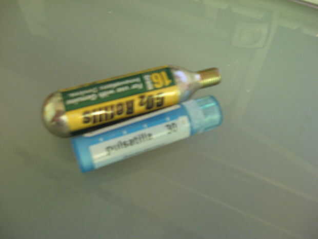 tuve un pequeño envase de tubo con una tapa que utilice para almacenar algunas cosas raras de la medicina, pero nada funciona. Asegúrese de es del mismo tamaño o más pequeño que el cartucho de co2, otra manera sería un ajuste de cabe en su bolsillo.