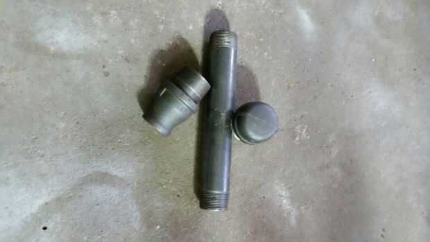 4) una pulgada de tubo. Galvanizado de uso no utilice su imaginación. Fui con un T - Connection, un par de pezones y tapas y unas piezas rectas.