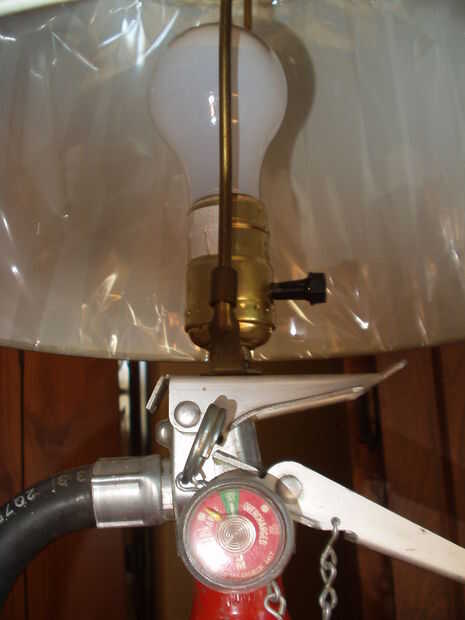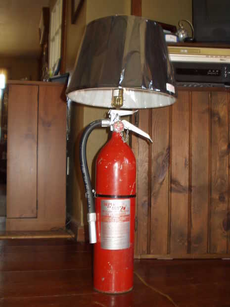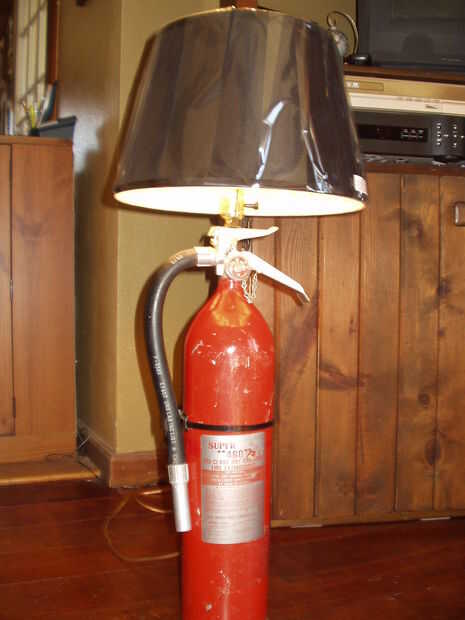 El paso final es enroscar la parte superior y cable de la luz. Y Voila! Lámpara de extintor de incendios. Añadir un foco de luz y una lámpara y se ve muy bien!