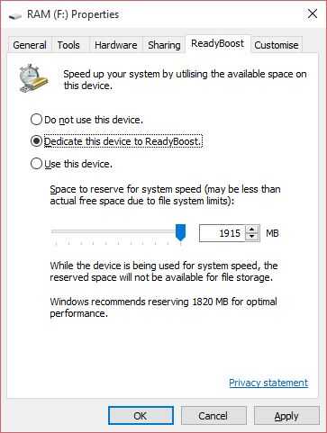 Nota: Usted no será capaz de usar la memoria dedicate como espacio de almacenamiento.