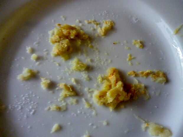 Microondas el ajo durante 15 segundos.  Si está todavía húmeda después de la primera va redondo, le dan un pequeño revolver con un palillo de dientes.  Microondas nuevo por otros 10-20 segundos.  Frote un poco de sal con un palillo si el ajo es aglutinación. Tener mucho cuidado para evitar que se queme de lo contrario, se vuelve amargo. Inmediatamente raspar la placa y poner en la jarra.