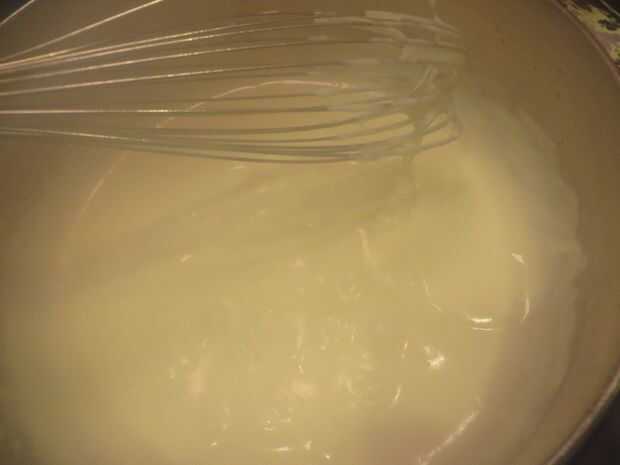 Agregue 2 tazas de leche blanca. Mantener revolviendo constantemente hasta que comience a espesarse.