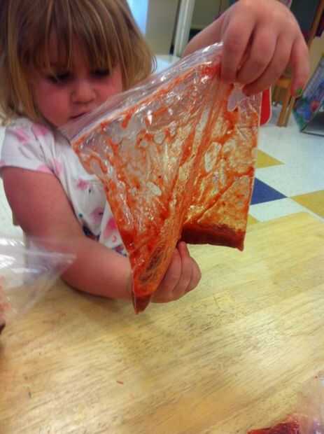 2) puré de la fresa en la bolsa sin crear demasiadas burbujas durante 2 minutos, asegurándose de que la consistencia es algo uniforme.