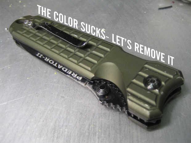 4. algo con una capa que usted simplemente no puede soportar. Tenía un cuchillo plegable nuevo que era un tono particularmente desagradable monótono verde oliva.