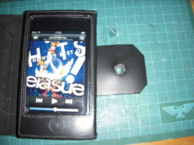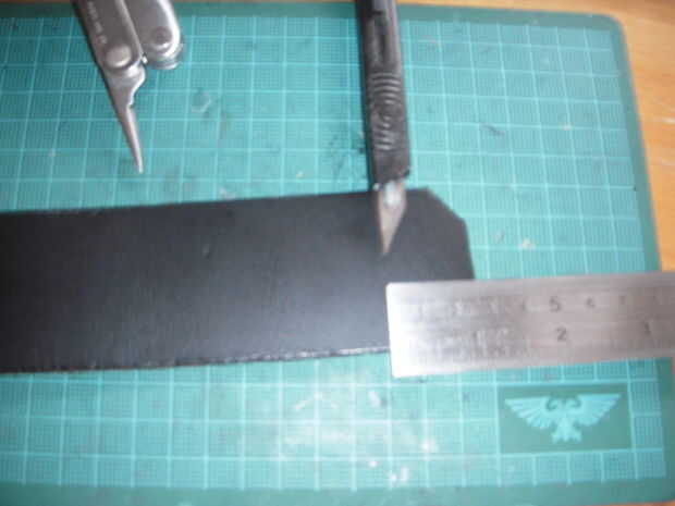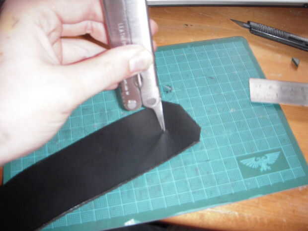 Luego viene el bisturí otra vez, ensanchando el agujero aún más con la misma acción de perforación. Es una buena idea para biselar ligeramente los bordes del agujero para hacerlas para el ojete. Asegúrese de que hacer ambos lados bien.