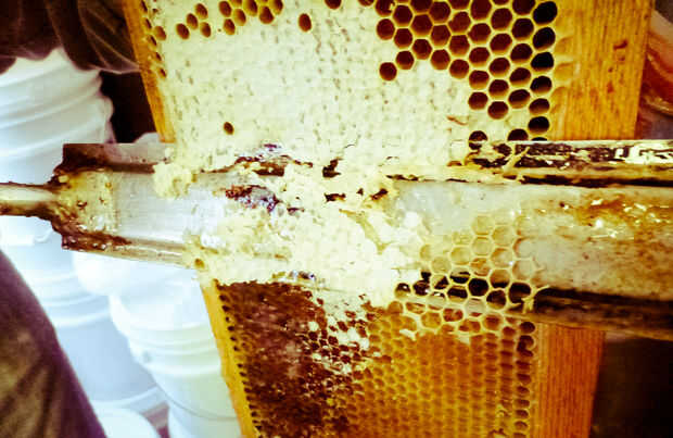 Esta fue la primera vez había extraído la miel. El proceso de extracción requiere algún equipo serio si quieres hacer las cosas bien. Tuvimos suerte suficiente para tener una conexión con una operación de miel producidas en serie más que nos permiten utilizar sus equipos. El extractor solo funciona en cualquier lugar de $2000-4000. Huy! Entonces era la tina destapando que va para gran otra pareja. Como los apicultores de pequeña, fuimos más que felices de tener acceso al equipo profesional.