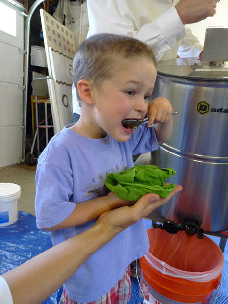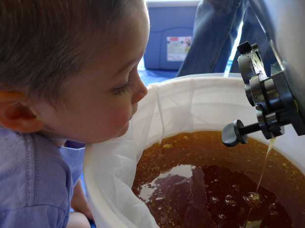 Cuando la miel empieza llenando la parte inferior de la campana, es necesario abrir la válvula y el flujo de miel que en el cubo de espera! Más excelente! Prueba de la calidad es una tarea muy importante. La miel es muy buena... ¿tal vez un gusto adicional se requiere?