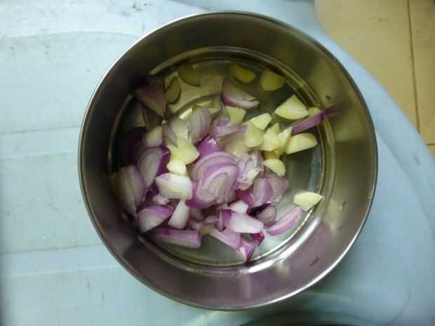 Usted puede agregar algunos otros ingredientes para hacer la hoja de extracto de buen gusto. La hoja del Gymnema no tiene ningún sabor. Usted puede agregar algunas cebollas picadas (aquí, hemos utilizado cebolleta), ajo clavo de olor, media cucharadita de polvo de semillas de comino, media cucharadita de polvo de cúrcuma y una pizca de asafétida.