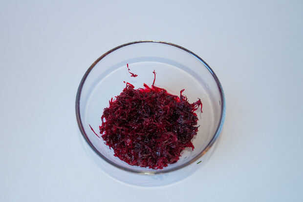 Rallar la remolacha y remoje en etanol durante aproximadamente una hora. Los pigmentos rojos de remolacha se disuelven muy fácilmente en agua, así que si están utilizando el extracto de inmediato y no plan de almacenamiento, sin necesidad de utilizar el etanol.