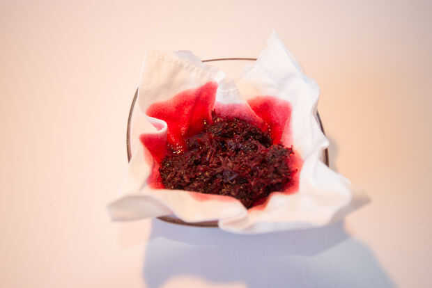 Pobres las remolachas en un trapo y saca hacia fuera todo el líquido.