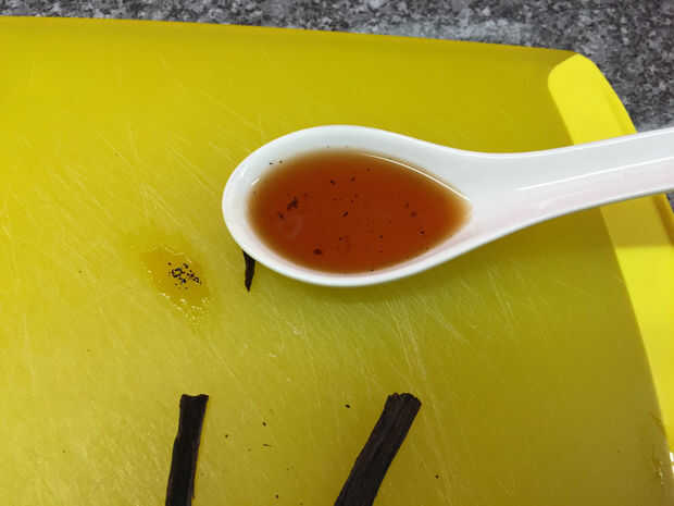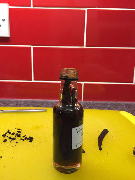 Extracto de vainilla casero1 limpia lunas alto botella de 8 onzas de vodka, Ron o bourbon o 8 onzas 100% puro 1 de glicerina vegetal. Cortar la vainilla longitudinalmente con un cuchillo o tijeras 2. Utilice un embudo para llenar la botella con alcoh