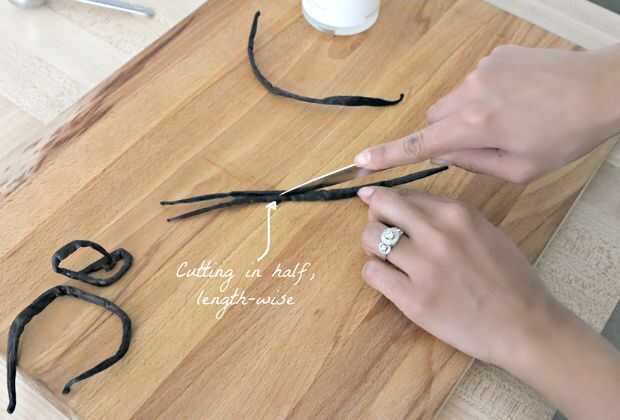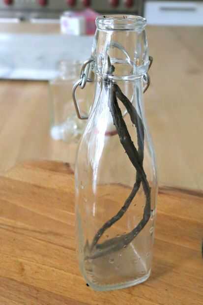 Extracto de vainilla casero1 limpia lunas alto botella de 8 onzas de vodka, Ron o bourbon o 8 onzas 100% puro 1 de glicerina vegetal. Cortar la vainilla longitudinalmente con un cuchillo o tijeras 2. Utilice un embudo para llenar la botella con alcoh