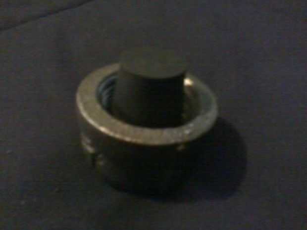 comenzar pegando el tapón de goma en una de las tapas de 1". Utilice el lado grande del tope para encolarla en.