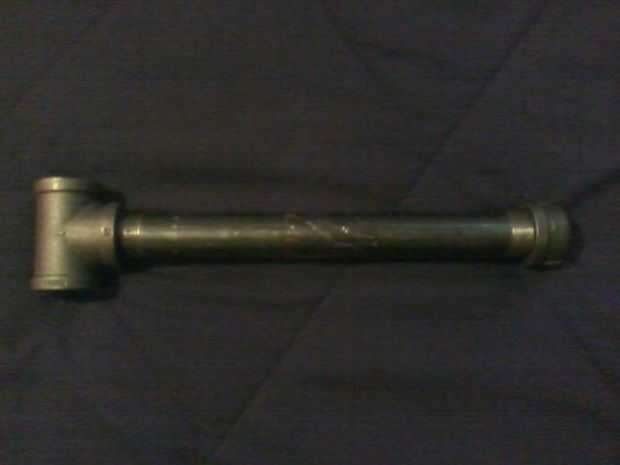 luego agarrar el tubo tee de 1" y el tornillo en el tubo de 1 x 12" y al final la tapa con el otro 1" cap sin el tapón de goma pegado en él, esto hace que el mango. (Foto 2)