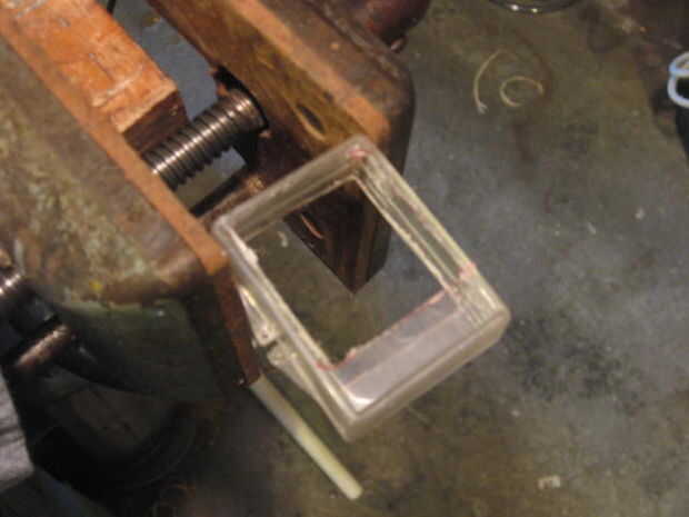 A continuación, marcar el ancho de la batería de 9v en la parte inferior de la caja y asegúrese de que tratas de centro donde la batería encajará en el caso. No necesito marcar la duración de la batería en mi caso porque su anchura es el ancho de la caja que he utilizado, y así que simplemente corte a lo largo de las dos líneas que había creado para la anchura de la batería y a lo largo de los bordes del recipiente entre las dos líneas. Cuando termines corte el orificio de la batería, la batería debe ser capaz de encajar perfectamente en la forma correcta de caso cuando impulsó. Un ajuste asegura que la batería actuará como una base estable. Por último, los bordes del agujero de la arena y saque cualquier residuo plástico que usted puede haber creado.
