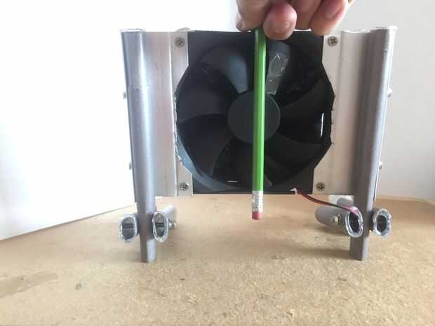 Soporte para el ventilador de enfriamiento se hizo con canal en U de aluminio (una y un cuarto pulgadas de ancho).