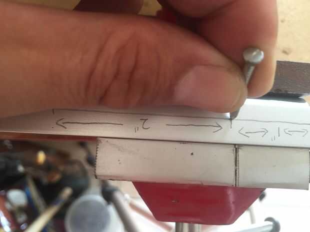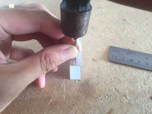 Un agujero de guía es punch con un clavo de acero antes de la perforación.