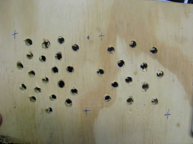 estaba seguro de qué hacer aquí. Si tienes un protector de dedos para los fans, entonces corte un agujero grande. Si no, perforé a sólo un montón de agujeros de 5,5 mm. Funciona bien.