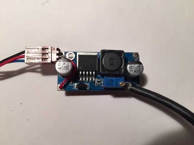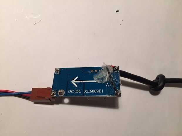 Ahora a soldar el convertidor al ventilador. Asegúrese de que el cable de alimentación o USB se alimenta a través del caso y de la soldadura de los cables rojo y negro USB marcas 'IN'. Conecte un multímetro a los pins 'Hacia fuera' y encender el potenciómetro (el convertidor) hasta llegar a 12V. Cuando estás seguro que del convertidor salidas 12V, suelde los cables rojo y negro del ventilador del ventilador a las marcas 'Hacia fuera'. Pegué el cable USB en su lugar, porque los cables eran muy frágiles. Si lo desea, podría añadirse un interruptor. En este punto, es una buena idea para probar el ventilador.