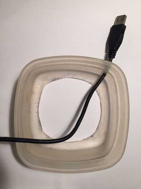 Además, perfore un agujero en la esquina de la caja y el cable de alimentación o USB a través de la alimentación. También, Ate una tuerca en el cable.