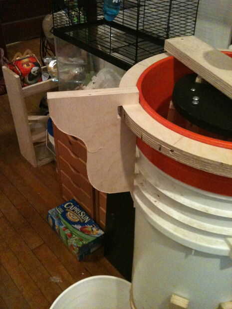 Lista de parte de extractor de miel:Un acero inoxidable de 3/8" rosca 36" longitud de la barra, 9$ en HomeDepotPuerta de una miel, 7$ en AmazonDos 6 "x 6" Lazy Susan gabinete rodamientos, 4.50$ en HomeDepotUn alimento grado 15 galones