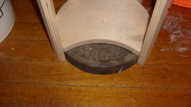 Más suerte, que peso de 50 libras que estaba sentado en el sótano bajo el soporte de la adición a la estabilidad. (También usé una cinta de embalaje para fijarla a la mesa.)