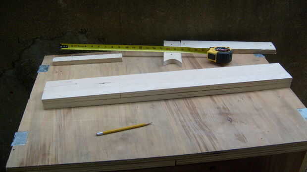 Marqué los discos en la sección 8 usando un transportador cada 45 grados. Luego colocar el primer disco en el segundo y dibujó un arco entre dos marcas saltando el centro uno (remontar el cubo). Marcada y taladre los orificios Asegúrese de que la segunda plataforma es mayor que el cubo inferior será.