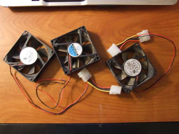 Después de seleccionar tus fans los arreglan en la configuración deseada y corbata junto con 4" abrazaderas de plástico. Usted podría utilizar más lazos zip sin embargo que será más ancha un mayo no caber a través de los orificios del ventilador.