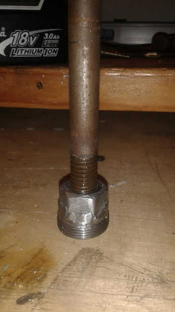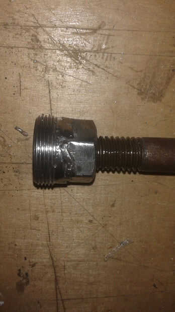 Asegúrese de que está trabajando con un tanque de propano vacía, Cortar el cuello del tanque, luego llevaba el interior del cuello. Cuidado de no dañar las roscas. Obtener su tuerca y perno, soldar la tuerca en la rosca. Limpie y apriete el perno.
