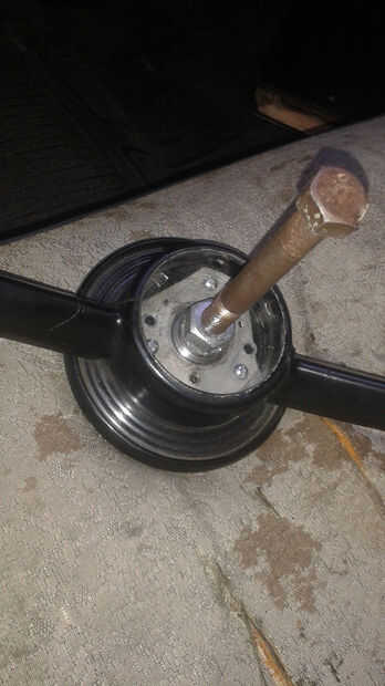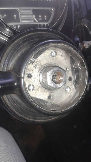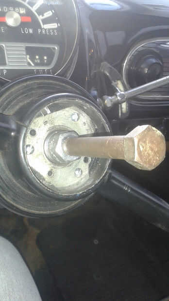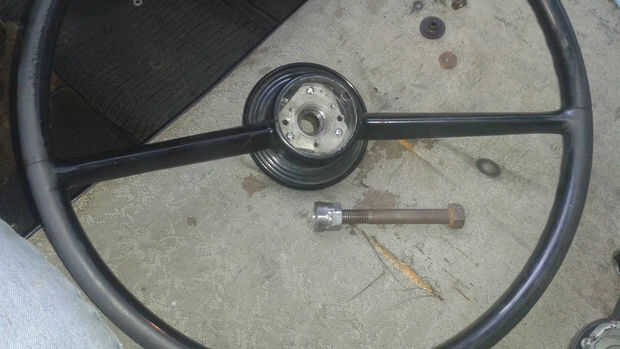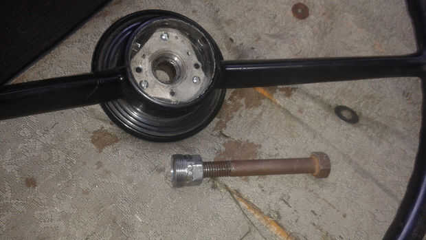 Atornillar el tirador nuevo al volante con hacia fuera el perno. Haz agradable y apretado, luego atornille el perno. Apriete el tornillo hasta que el volante aparece. Y listo.