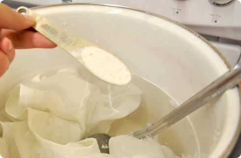 A continuación necesitamos mordiente la seda para que el tinte se fije a él. Sobre un cuarto de galón de agua hirviendo para disolver la mezcla 4,5 cucharadas de alumbre (sulfato del aluminio del potasio) con. Añadir a un bote de tinte lo suficientemente grande para la tela. Llenar el bote de tinte con agua a temperatura ambiente y revolver bien. Añadir la tela en el bote de tinte y revuelva suavemente al tiempo que el calor hasta 200° F. Mantenga a esta temperatura durante 45 minutos girando a la tela de vez en cuando y deje que se enfríe así que usted puede manejar. Usando guantes retire a la tela del bote de colorante, drenaje y enjuague brevemente. Ahora estás listo para comenzar a teñir. Puede mordaz en un día y el siguiente del tinte o mordiente y colorante en el mismo día. Si son mordentado con antelación, guardar a la tela mordanted en una bolsa de plástico en un lugar fresco durante una semana.