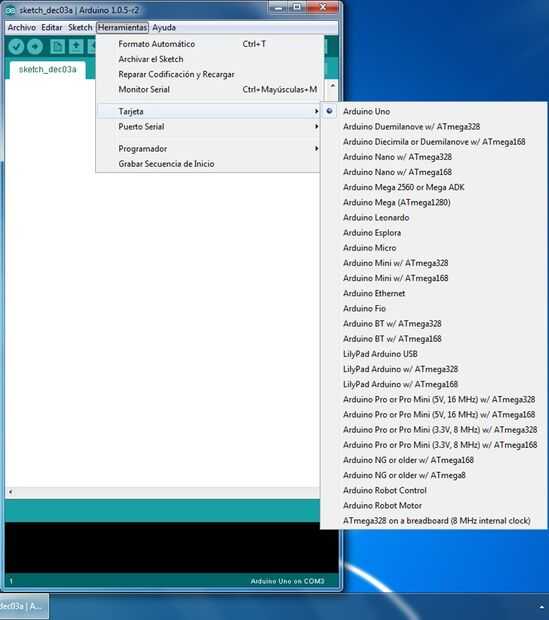 NOTA: en este caso se cargara la versión del gestor de arranque correspondiente al Arduino UNO, existen otras versiones de gestor de arranque (como se mencionó en la sección "un poco de teoría") como por ejemplo la versión existe para el microcontrolador ATMEGA2560 (Arduino Mega). En este caso asegurar que este seleccionada la tarjeta quilómetro, párr el bootloader correspondiente.