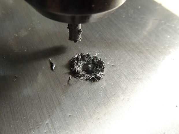 La foto muestra cómo el taladro quedó al final del proceso - no bastante. Esta es una herramienta única, espero que nunca tengo que hacer algo similar otra vez!