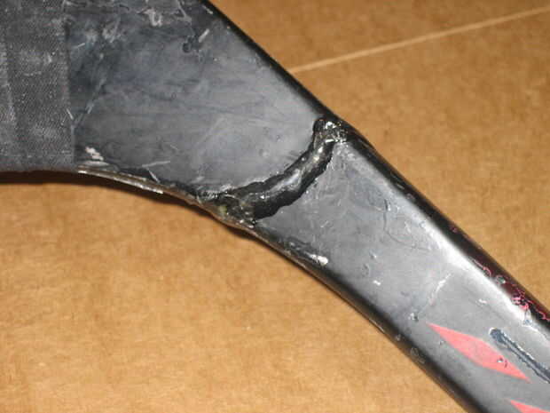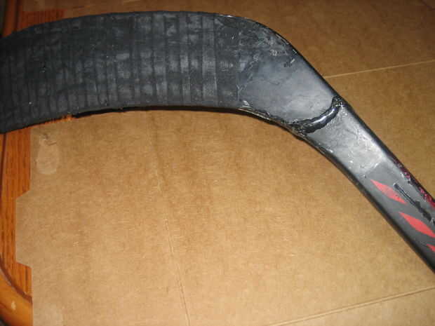El palo que utilizaba se rompió justo por encima de la hoja usé un secado transparente de epoxy dos para reparar la rotura porque quería que mi palo de hockey para aparecer como si no estaba roto.