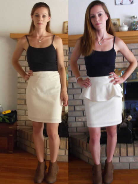 Fondo: La falda que he creado fue hecha desde cero - lo que significa, no tengo un patrón comprado. Era mi primera vez haciendo mi propio patrón y si está interesado, podría hacer lo mismo (explico exactamente cómo hacerlo en el paso 2). No era difícil, pero tomó algo de tiempo y ajustes. Una vez hecho esto, usted tiene su propio patrón a utilizar para crear faldas más en el futuro. Si no estás interesado en hacer una falda de medida, siempre podría usar un patrón de la tienda o usar una falda recta que ya. La falda tuvo la mayoría del tiempo. El peplum no tardaron y es muy sencillo de hacer. Si desea hacer algunos de ellos para unir a las faldas le ya con, siéntase libre saltar a ese paso de este instructable! Me tomé mi tiempo haciendo la falda como quería que fuera realmente de alta calidad y completamente en el interior. Estoy muy contento con cómo resultó!