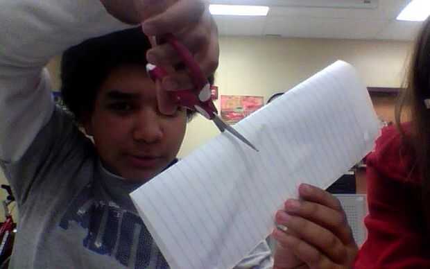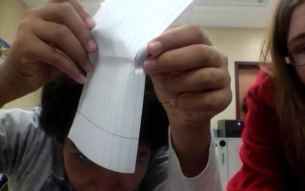 Gire el papel hacia los lados, hasta abajo es menor de izquierda a derecha y a la derecha, alrededor de dos pulgadas del pliegue, añadir una pulgada larga raja, paralela al pliegue. Esto significa no nessisarily que el pliegue debe ser de dos pulgadas de distancia, ni que tiene que ser una pulgada de largo. Hacer un corte en ambos lados del pliegue, en el mismo lugar con la misma longitud. Debería verse como la rendija derecha refleja la izquierda.