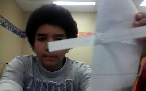 Este próximo paso será complicada, así que preste atención. Tomar la tira e inserte a través de ranuras del otro papel. A continuación, pegue las puntas de la tira a los lados del papel. Tener por lo menos media pulgada de extremos de la tira pegada abajo. Dejar como mucho extra dentro de la tarjeta como sea posible.