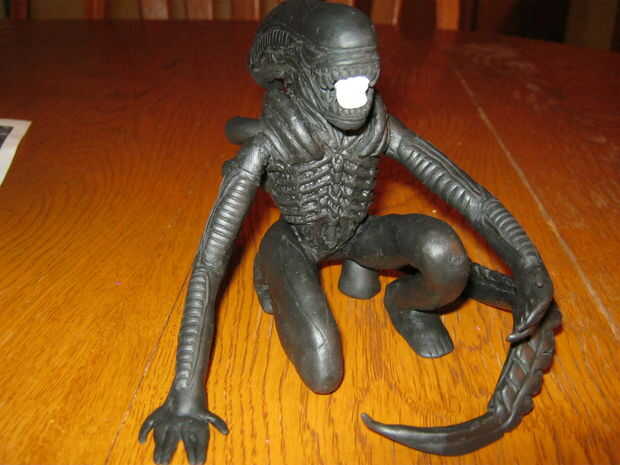 este traje fue inspirado por Alien de H.R. Giger de la película Alien. Fue diseñado para un niño, pero podría ampliarse hacia arriba o hacia abajo.Mi hijo fue capaz de trabajar en muchos de los pasos, pero intervino para cortar el alambre de pollo y